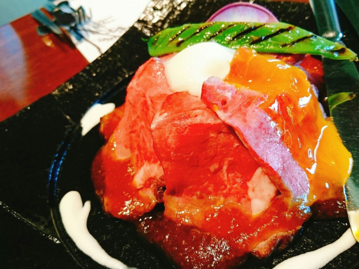 おすすめは、ディナービュッフェで大好評の“ローストビーフ”を使ったローストビーフ丼です!信州味噌とリンゴでマリネしたとってもジューシーなローストビーフを特製ソースと、