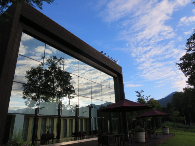 ガラスに映っている空の雲もなんとなく秋の雰囲気が漂っています。