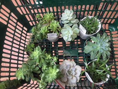 多肉植物のコーナーから気に入ったものを選び、寄せ植えスタート!