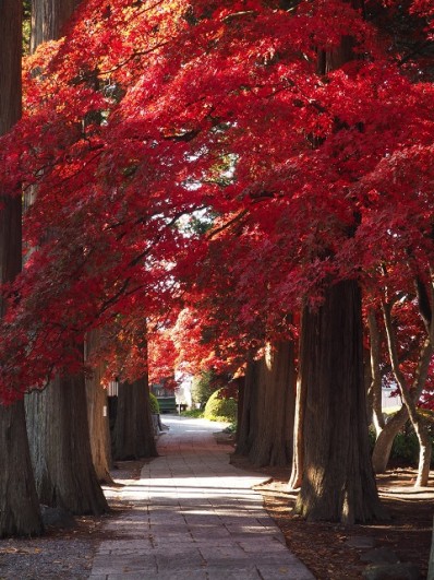 参道には杉並木ともみじ、境内には大きなイチョウの木もあり、