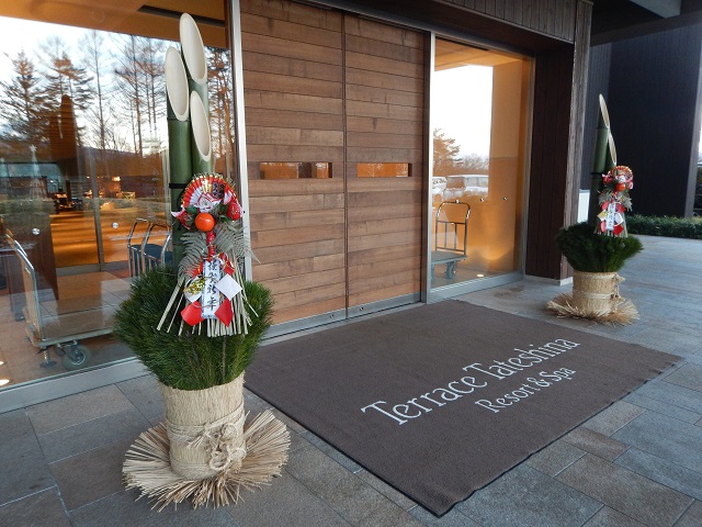ホテルの正面玄関にはクリスマスツリーの代わりに門松が飾られ、