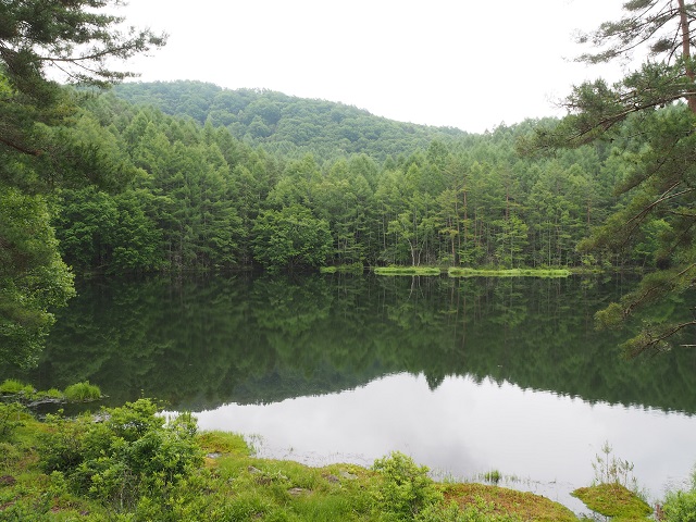 深緑の御射鹿池とおしどり隠しの滝