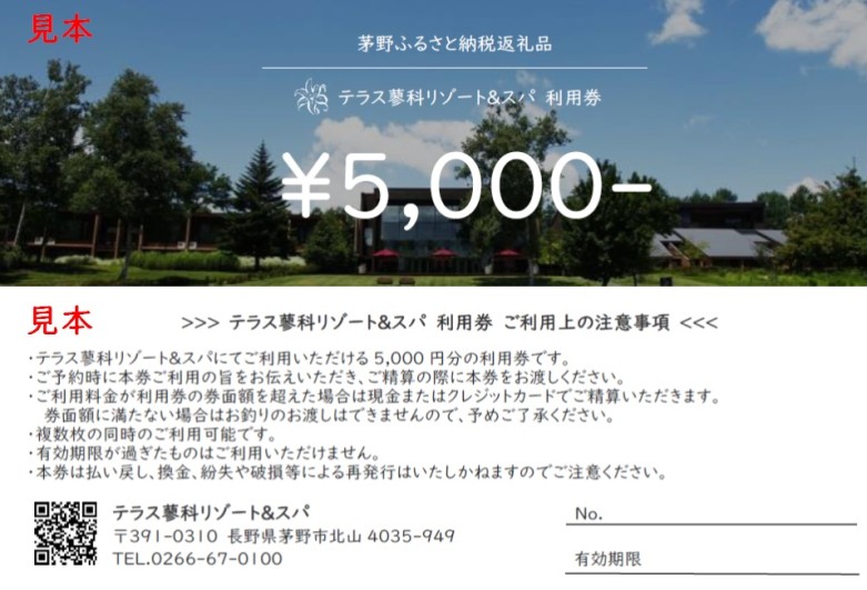 12月1日から茅野市ふるさと納税の返礼品にテラス蓼科リゾート&スパでご利用いただける5,000円の利用券が新たに加わります。